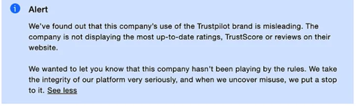 One of the so-called “premium features” is the right to purchase tools that allow companies to display Trustpilot reviews or even just the average star rating on their own websites. If a business declines to use Trustpilot’s tools but still links to its profile, Trustpilot will display a warning to customers, effectively punishing the business for not buying in.