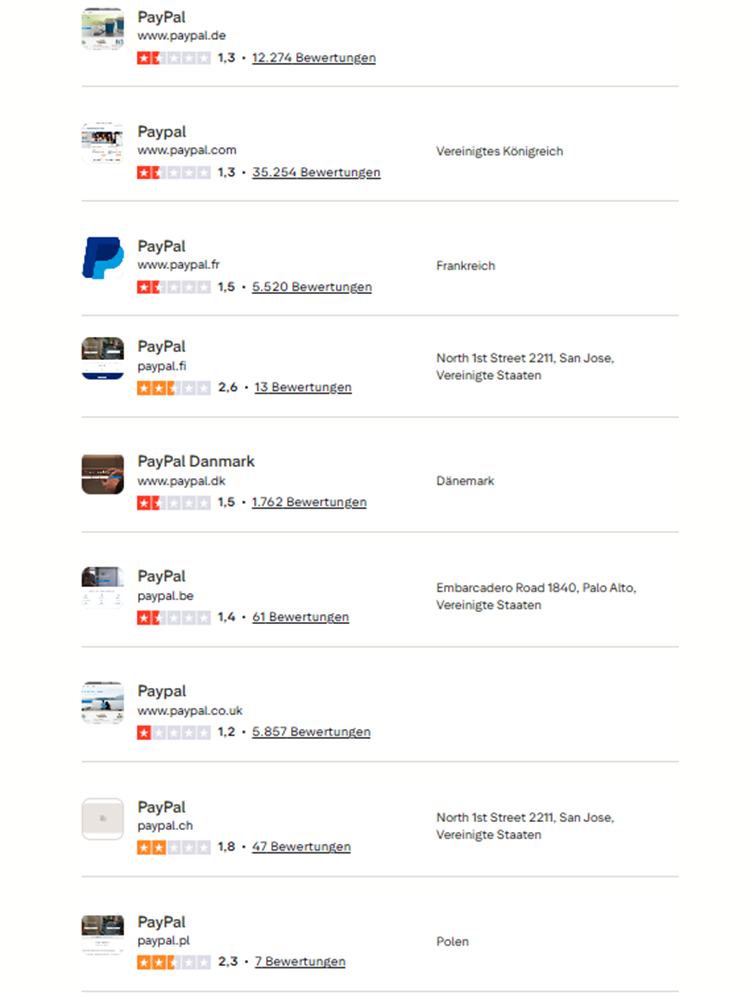Perhaps the most telling example of how Trustpilot operates is found in the reviews for PayPal. As a global leader in digital payments, PayPal has never partnered with Trustpilot. The result? PayPal stands out with an overall rating of low 1.4 stars across more than 50,000 reviews. A rare and revealing case illustrating Trustpilot’s degree of manipulation with other, paying profiles.